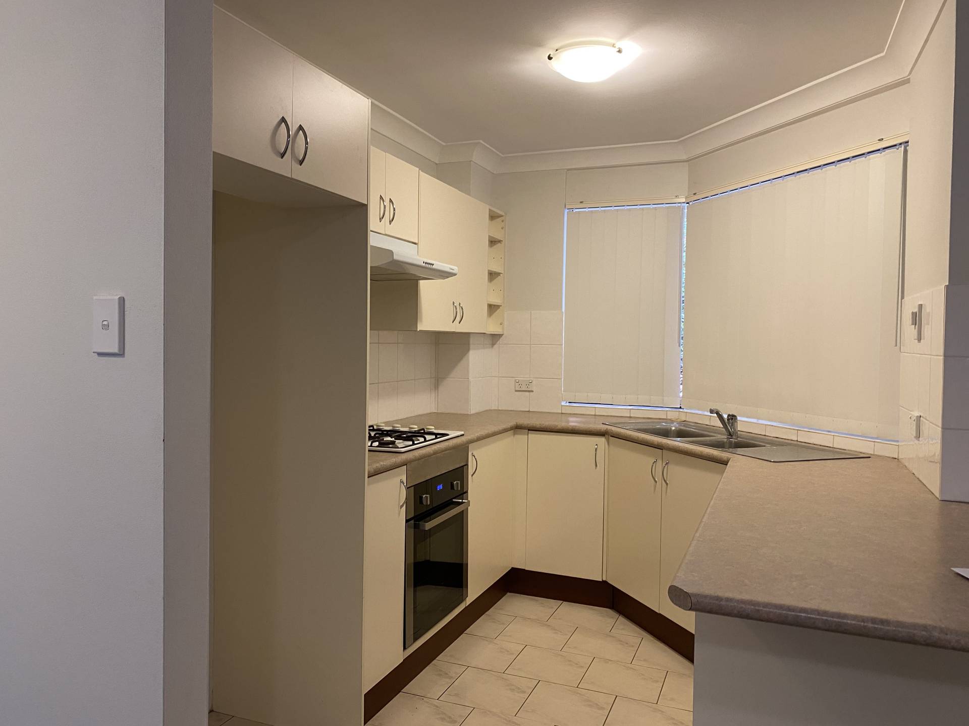 • Modern kitchen with gas cooktop and electric oven.